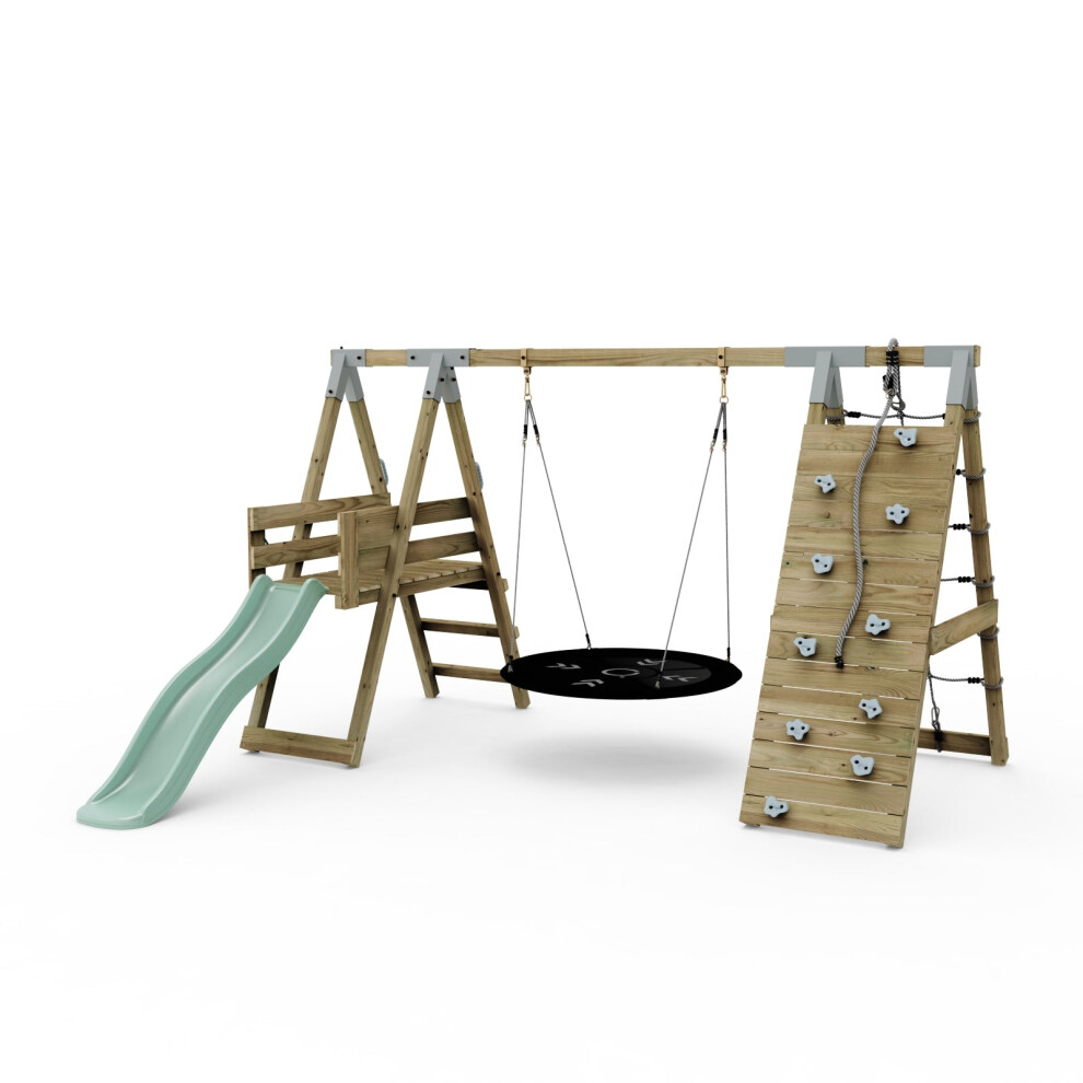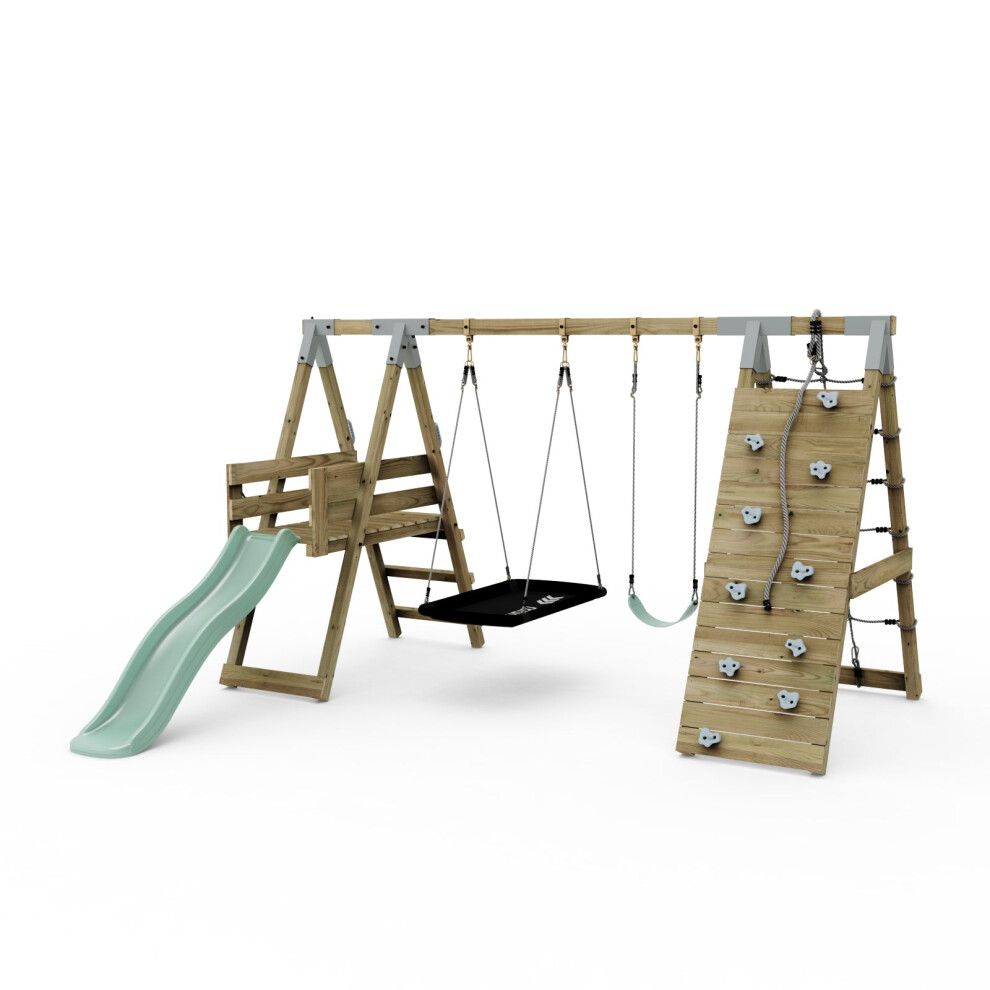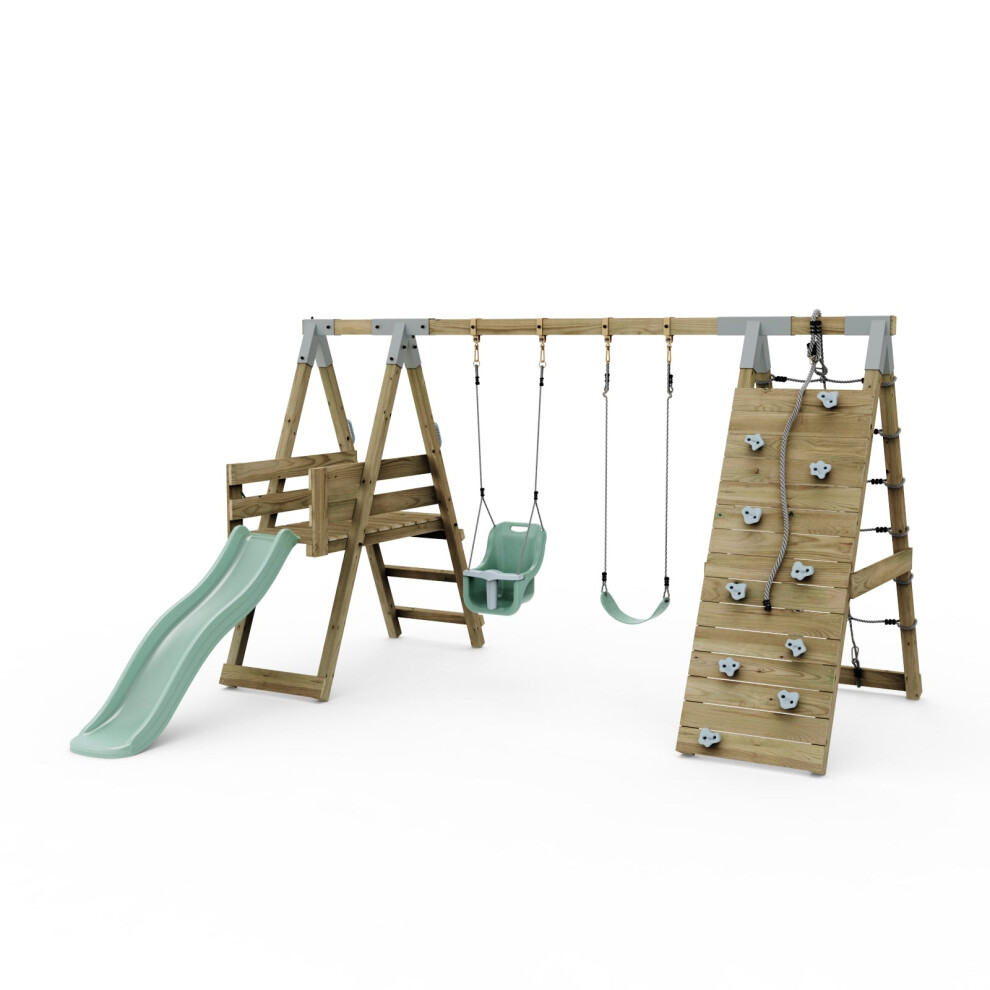 Rebo Adventure Wooden Garden Climbing Frame, Swing Set and Slide for Kids - Rainier Green