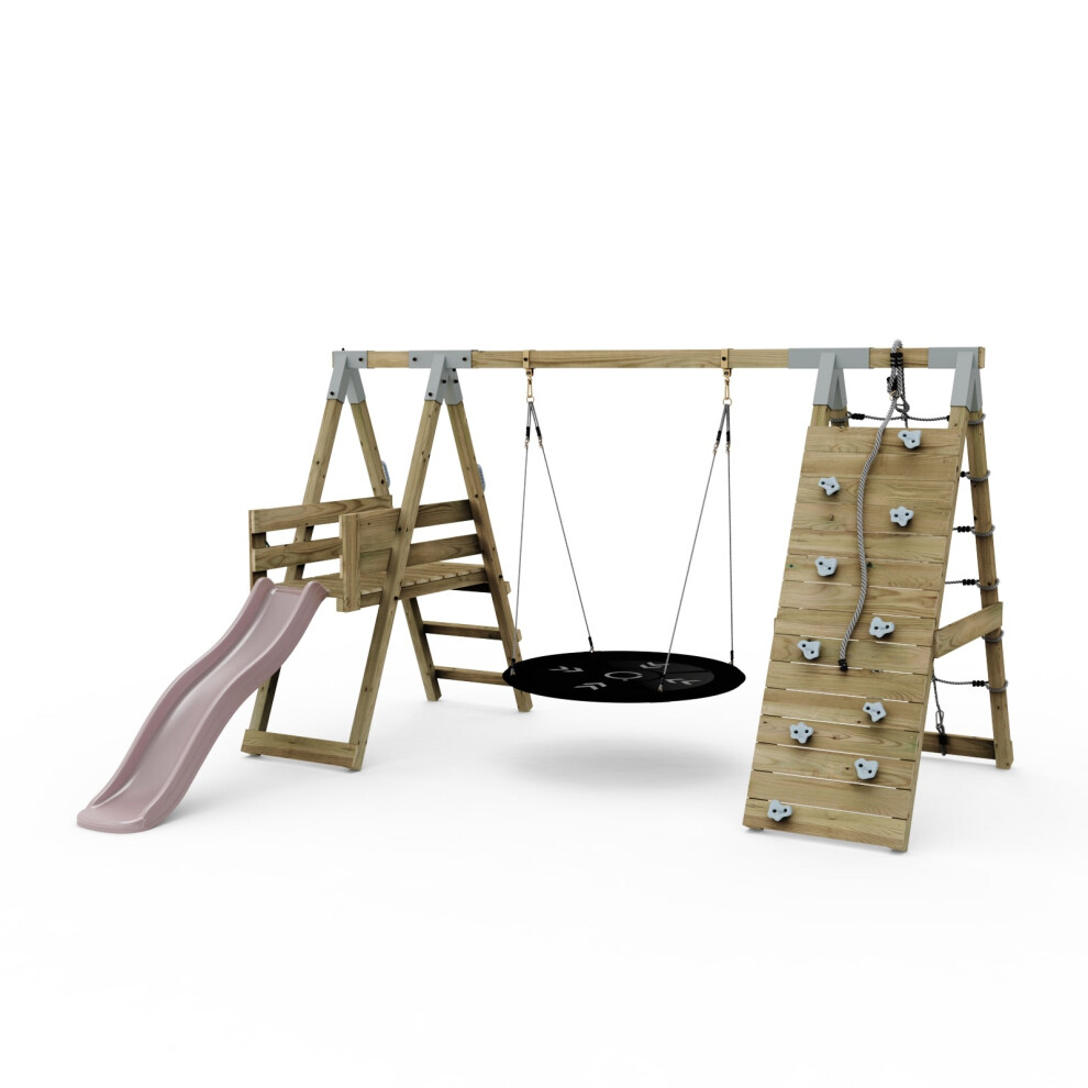 Rebo Adventure Wooden Garden Climbing Frame, Swing Set and Slide for Kids - Rainier Pink