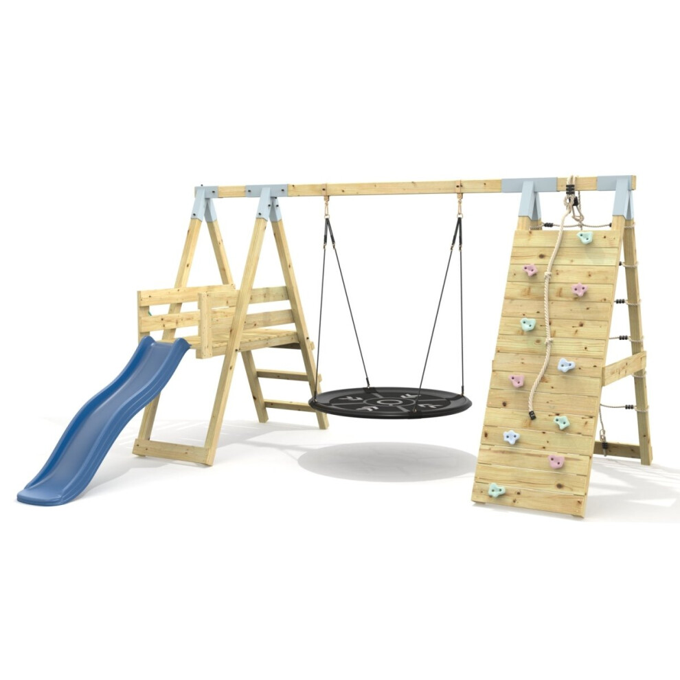 Rebo Adventure Wooden Garden Climbing Frame, Swing Set and Slide for Kids - Snowdon
