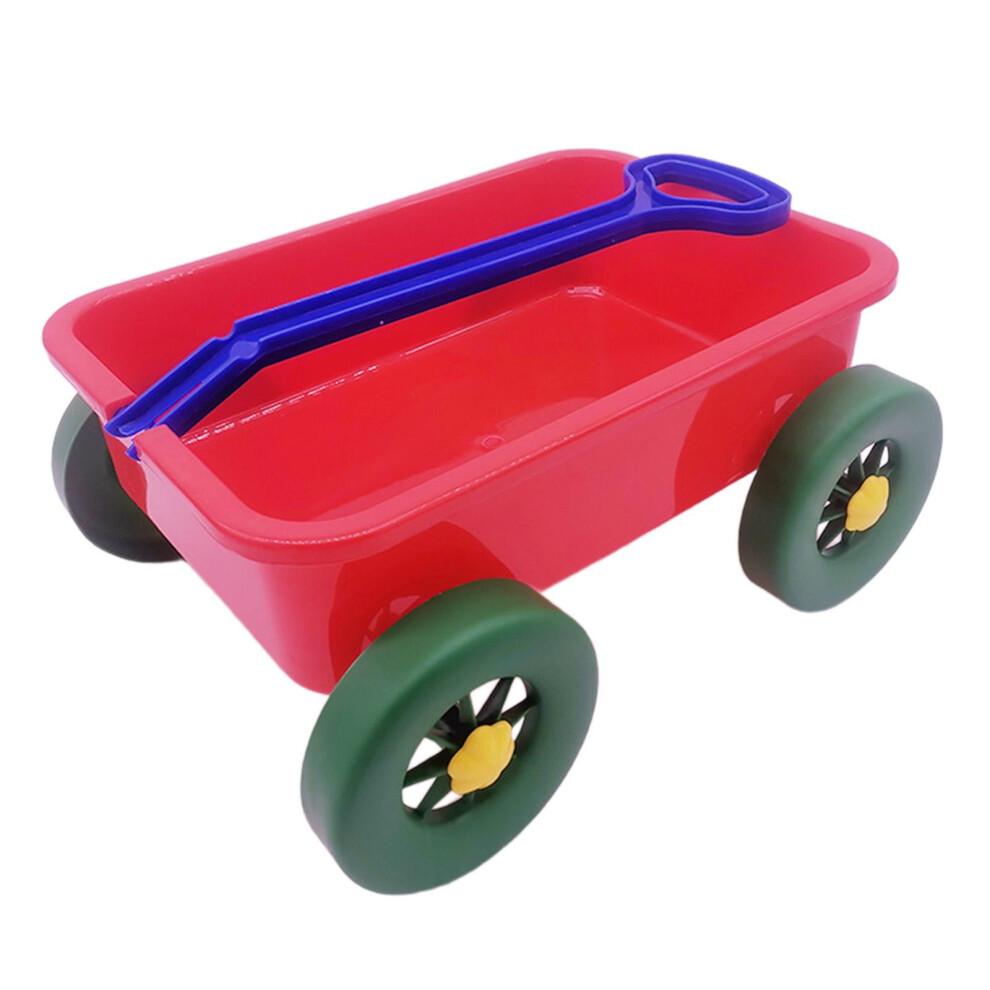 Pretend Play Wagon Toy, Construction Vehicle Beach Game Toy, Pull Car Toy, Sand Toy Trolley for Kids Children Boys Girls, Red