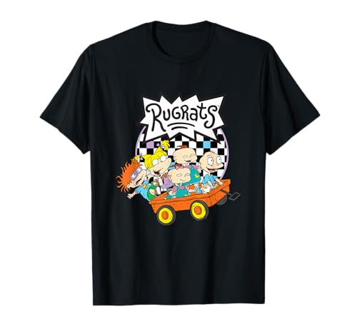 Rugrats Logo Checkerboard With Kids In Wagon T-Shirt