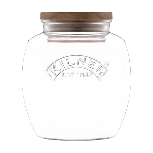 Kilner Universal Jar Wooden Lid 2 Litre Glass Food Container With Silicone Seals Kitchen Pantry Storage For Dry Food Like Grains, Pasta And Cereals