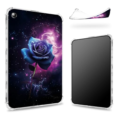 Designed for 10.1" Kindle Fire HD 10 (9th/7th/5th Gen, 2019/2017/2015 Release) Case, Transparent Back with Purple Galaxy Rose, Slim Soft TPU Corner Protection Shockproof Bumper Cover