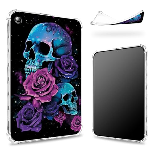 Designed for 10.1" Kindle Fire HD 10 (9th/7th/5th Gen, 2019/2017/2015 Release) Case, Transparent Back with Skull Flower, Slim Soft TPU Corner Protection Shockproof Bumper Cover