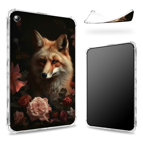Designed for 10.1" Kindle Fire HD 10 (9th/7th/5th Gen, 2019/2017/2015 Release) Case, Transparent Back with Fox Flowers, Slim Soft TPU Corner Protection Shockproof Bumper Cover