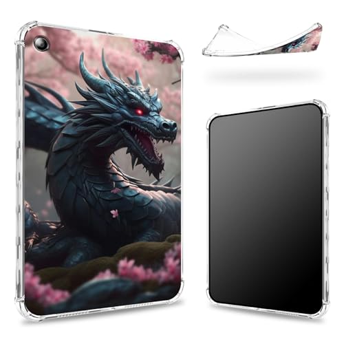 Designed for 10.1" Kindle Fire HD 10 (9th/7th/5th Gen, 2019/2017/2015 Release) Case, Transparent Back with Dragon Pink Sakura, Slim Soft TPU Corner Protection Shockproof Bumper Cover