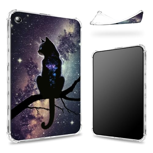 Designed for 10.1" Kindle Fire HD 10 (9th/7th/5th Gen, 2019/2017/2015 Release) Case, Transparent Back with Cat Nebula, Slim Soft TPU Corner Protection Shockproof Bumper Cover