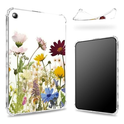 Designed for 10.1" Kindle Fire HD 10 (9th/7th/5th Gen, 2019/2017/2015 Release) Case, Transparent Back with Wild Forals, Slim Soft TPU Corner Protection Shockproof Bumper Cover