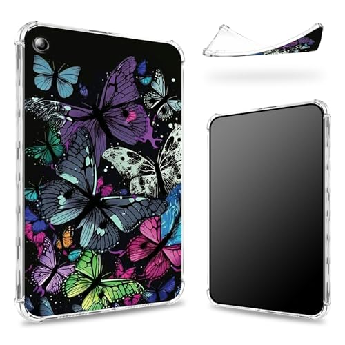Designed for 10.1" Kindle Fire HD 10 (9th/7th/5th Gen, 2019/2017/2015 Release) Case, Transparent Back with Colorful Butterfly, Slim Soft TPU Corner Protection Shockproof Bumper Cover
