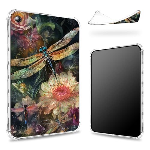 Designed for 10.1" Kindle Fire HD 10 (9th/7th/5th Gen, 2019/2017/2015 Release) Case, Transparent Back with Dragonfly Beautiful, Slim Soft TPU Corner Protection Shockproof Bumper Cover