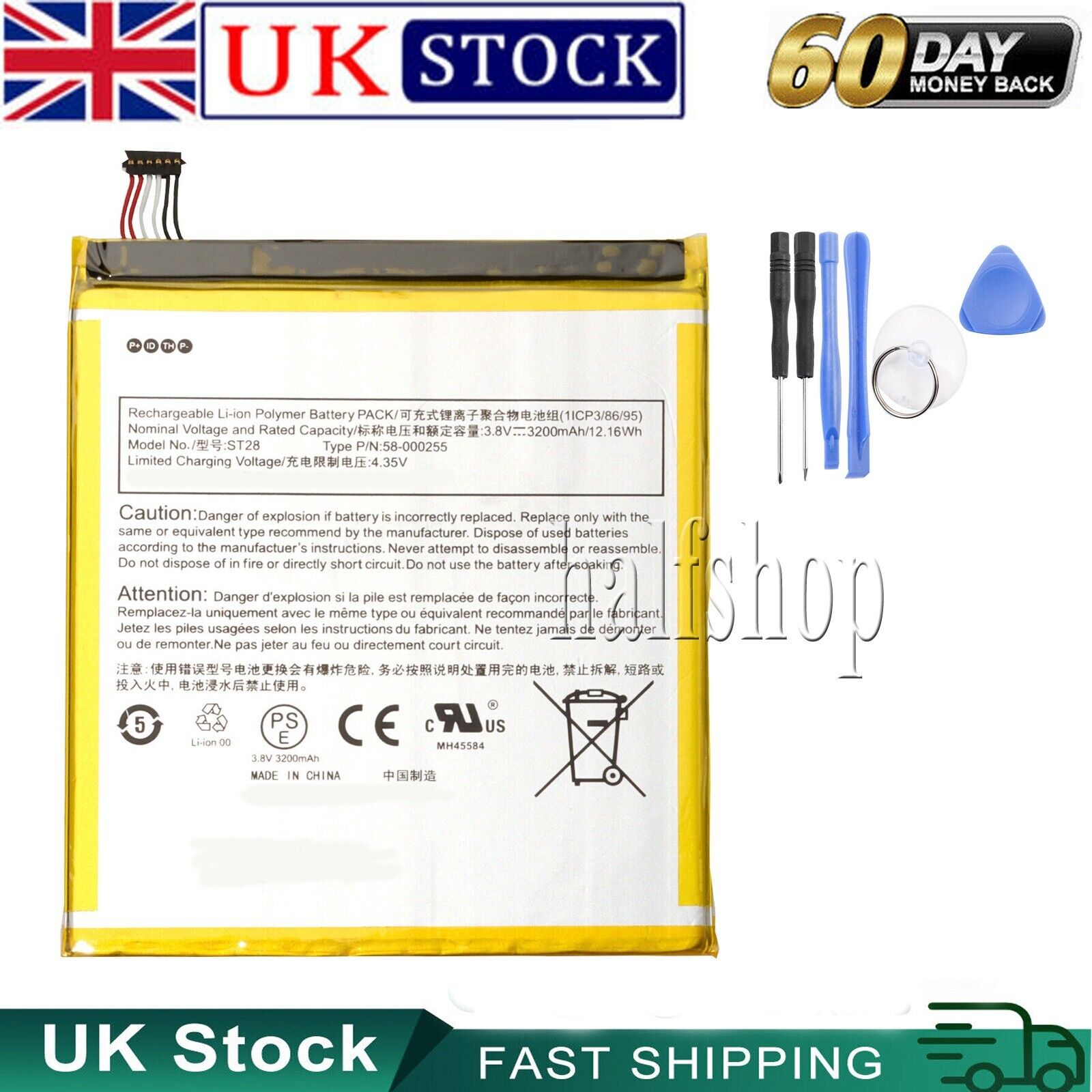 MC-308695, 58-000255, ST28 Battery for Amazon Kindle Fire 2019 9th Generation