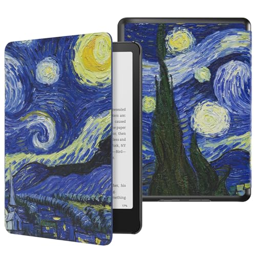 MoKo Case for All-new 7" Kindle Paperwhite 12th Gen 2024&Kindle Colorsoft Signature Edition 2024,Lightweight PU Protective Shell Cover with Auto Wake/Sleep for Kindle Paperwhite 2024,Starry Night Blue