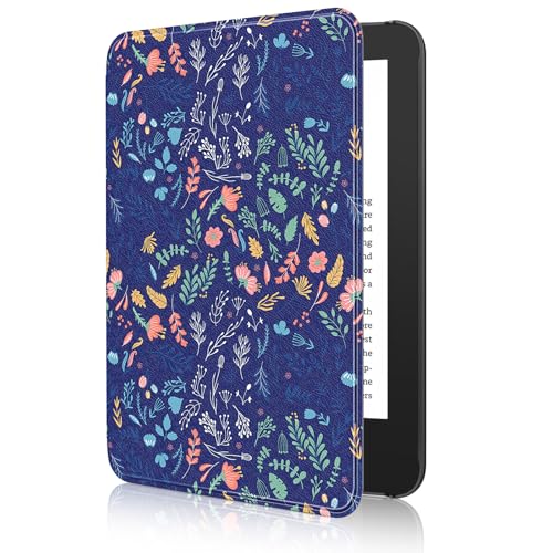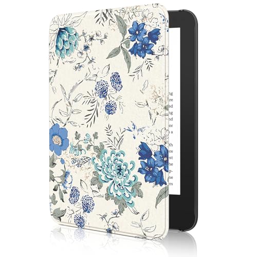 MoKo Case Fits 6" All-New Kindle (11th Generation-2024/2022 Release), Lightweight Shell Cover with Auto Wake/Sleep for Kindle 2024/2022 11th Gen e-Reader, Flowers on Blue