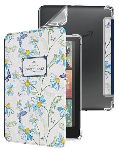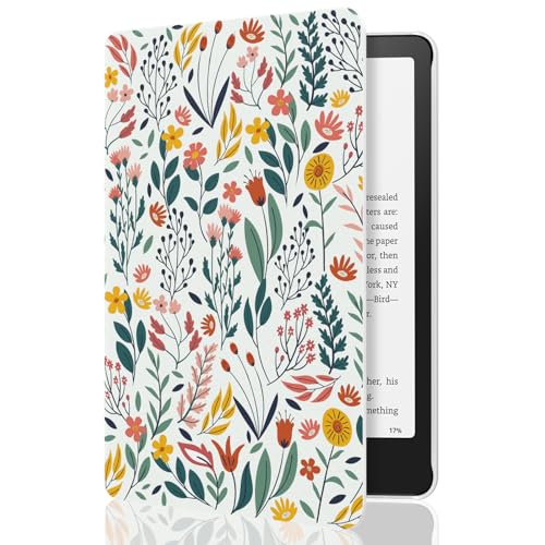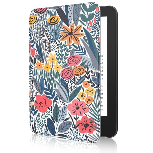 MoKo Case for All-new 7" Kindle Paperwhite 12th Generation 2024&Kindle Colorsoft Signature Edition 2024, Lightweight PU Protective Shell Cover with Auto Wake/Sleep for Kindle Paperwhite 2024, Flowers