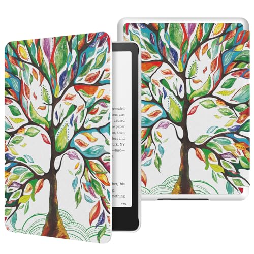 MoKo Case for All-new 7" Kindle Paperwhite 12th Generation 2024&Kindle Colorsoft Signature Edition 2024,Lightweight PU Protective Shell Cover with Auto Wake/Sleep for Kindle Paperwhite 2024,Lucky Tree