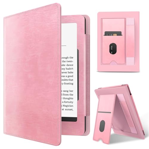 MMK Case for 6" Kindle (11th Generation-2024/2022 Release), Premium PU Leather Smart Cover & Hand Strap Card Slot, with Auto Wake/Sleep for Kindle 2024/2022 11th Gen e-Reader, Pink