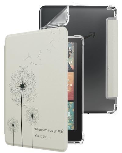 WALNEW Case for 7" Kindle Paperwhite 12th Generation 2024 and Kindle Colorsoft Signature Edition, Clear Soft TPU Back Protective Cover for 2024 Kindle Paperwhite (Dandelion)