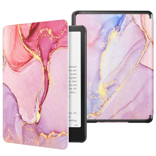 MoKo Case for New 7"Kindle Paperwhite 12th Gen 2024&Kindle Colorsoft Signature Edition 2024,Lightweight PU Protective Shell Cover with Auto Wake/Sleep for Kindle Paperwhite 2024,Light Pink Gold Marble