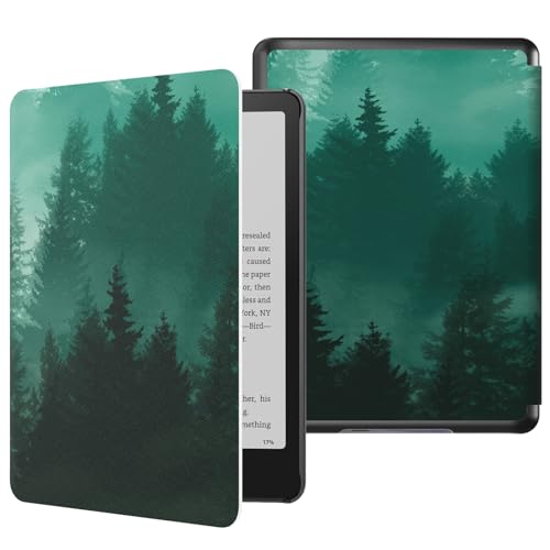 MoKo Case for All-new 7" Kindle Paperwhite 12th Gen 2024&Kindle Colorsoft Signature Edition 2024, Lightweight PU Protective Shell Cover with Auto Wake/Sleep for Kindle Paperwhite 2024, Green Forest