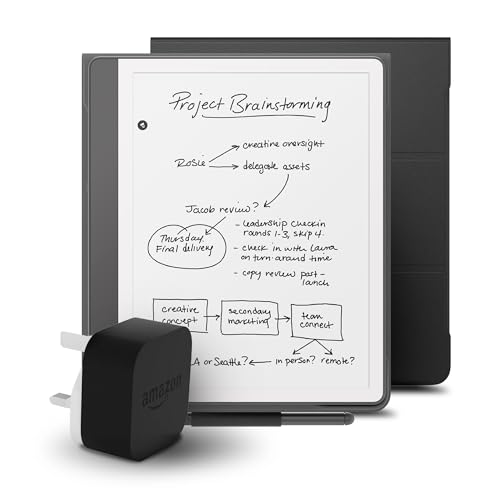 Kindle Scribe (2024 Release) 64 GB, an Amazon Premium Leather Cover and an Amazon Powerfast 9W Power Adapter