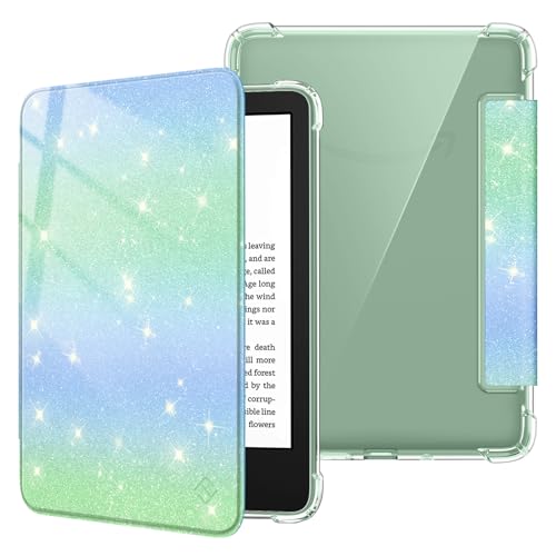 FINTIE Slim Case for 6" Kindle (11th Generation-2024/2022 Release), Ultra Clear Soft Flexible TPU Back Cover Light Shell with Auto Wake/Sleep for Kindle 2024/2022 11th Gen, Glitter Green/Blue