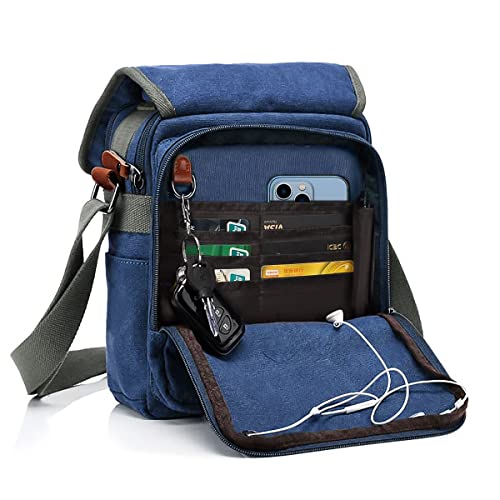 CHEREEKI Canvas Bag, Shoulder Bag Messenger Bag with Multiple Pockets (Hold 10 inch Tablet, Kindle)(Blue), (ML-003)
