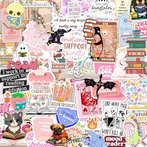 50Pcs Book Stickers for Kindle,Bookish Stickers Decals,Vinyl Waterproof Stickers for Laptop Water Bottle,Book Lovers Gifts