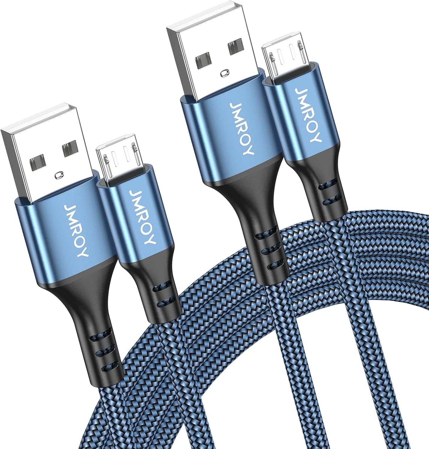 JMROY 2M Micro USB Cable 2-Pack Fast Charging Nylon Braided Android Kindle