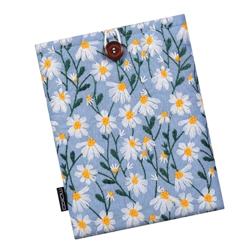 MoKo 6-7 Inch Embroidered Daisy Padded Sleeve Pouch for Kindle Colorsoft, Kindle Paperwhite 12th Gen 2024, Kindle 2022-2016, Kindle Pouch for Oasis/Voyage/Kobo eReader, Blue