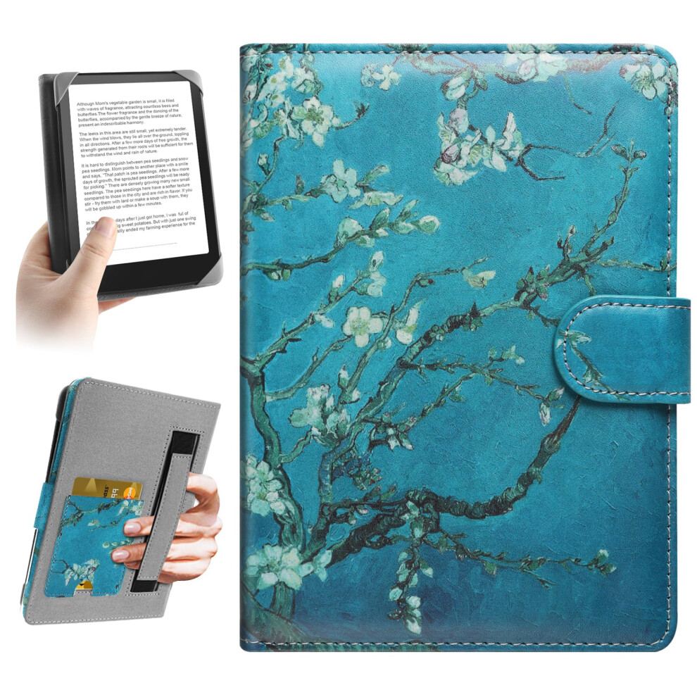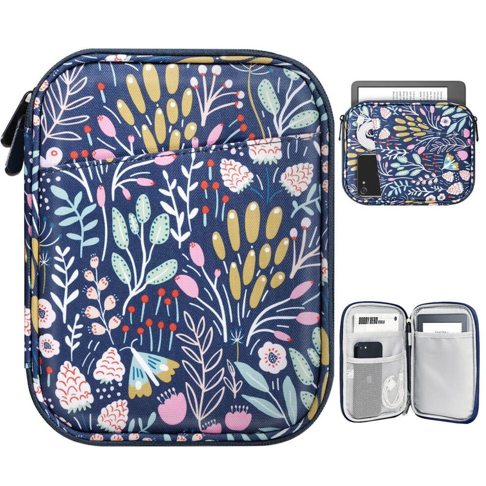 HoYiXi Universal Case for 6 inch Kindle eReader Compatible with Paperwhite(2025/2018)/PocketBook and Tolino/Kobo Clara HD,6" eReader Protective Case Cover Elastic rope,Blue flowers