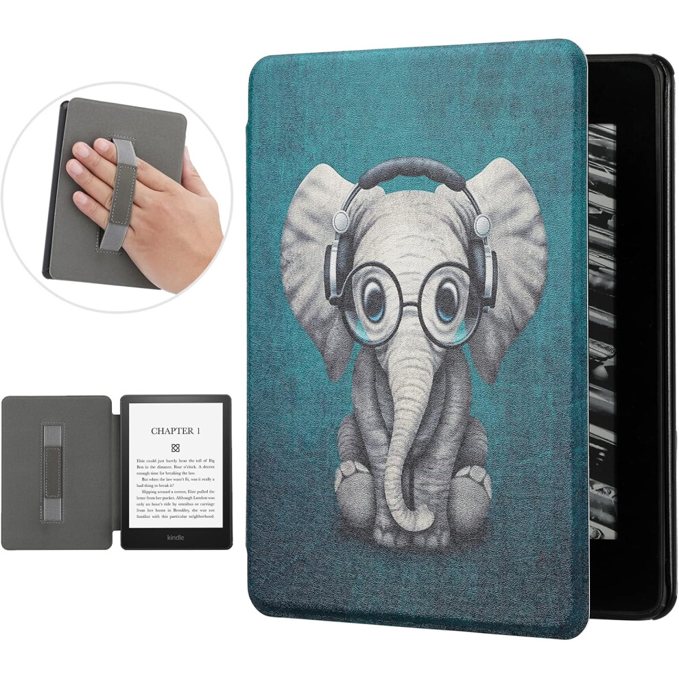 Case for Kindle Paperwhite 11th Generation E-Reader (6.8", 2021), with Palm Rest and Auto Sleep/Wake Function, Elephant