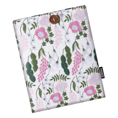 MoKo 6-7 Inch Embroidered Daisy Padded Sleeve Pouch for Kindle Colorsoft, Kindle Paperwhite 12th Gen 2024, Kindle 2022-2016, Kindle Pouch for Oasis/Voyage/Kobo eReader,Pink Flowers