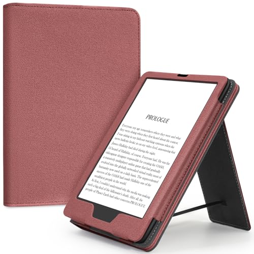 Slim Case for 7"/6.8" Kindle Paperwhite with Hand Strap(12/11th Generation 2024/2021)&Kindle Colorsoft Signature Edition,Stand Cover and Card Slot,Premium PU Sleeve with Auto Wake/Sleep,Raspberry Red