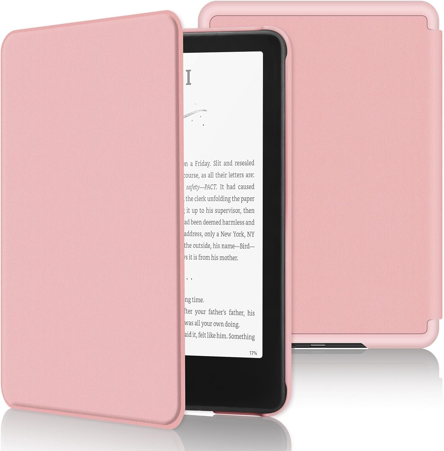 (Rose Gold) For Amazon Kindle Paperwhite (2024) Kindle Colorsoft Case PC + PU E-Reader Cover Support Auto Wake Sleep
