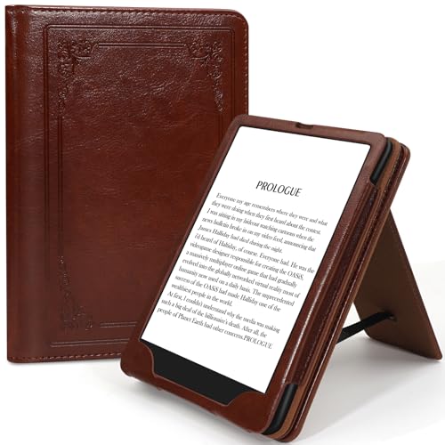 Slim Case for 7"/6.8" Kindle Paperwhite with Hand Strap(12/11th Generation 2024/2021)&Kindle Colorsoft Signature Edition,Stand Cover and Card Slot,Premium PU Sleeve with Auto Wake/Sleep,Vintage Brown