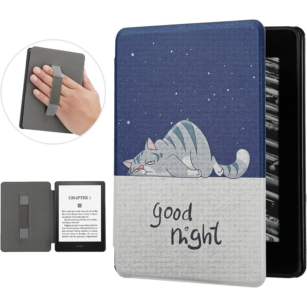 Case for Kindle Paperwhite 11th Generation E-Reader (6.8", 2021) Palm Rest and Auto Sleep/Wake Function Blue Cat