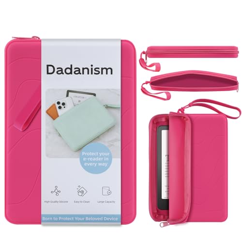 Dadanism 6-7 Inch Silicone Clutch for 7" Kindle Paperwhite and Kindle Colorsoft Signature Edition, 6" K-indle, Kobo, Nook E-Reader, Anti-Dust Coating Multi-Purpose Bag for Phone, Wallet, Raspberry