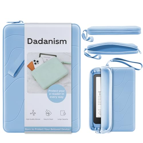 Dadanism 6-7 Inch Silicone Clutch for 7" Kindle Paperwhite and Kindle Colorsoft Signature Edition, 6" K-indle, Kobo, Nook E-Reader, Anti-Dust Coating Multi-Purpose Bag for Phone, Wallet, Bondi Blue