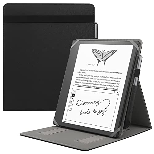 HoYiXi Universal Case for 10.2-inch Introducing Kindle Scribe(2024 & 2022 Release),10.3-inch Kobo Elipsa eReader 2021 Release Foldable Cover with Vertical Flip Stand Pen Holder - black
