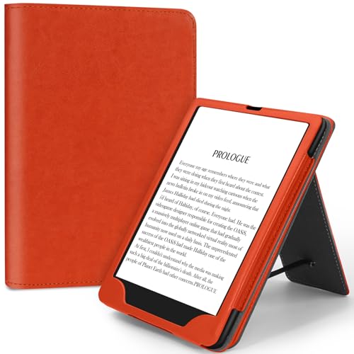 Slim Case for 7"/6.8" Kindle Paperwhite with Hand Strap(12th/11th Generation 2024/2021) and Kindle Colorsoft Signature Edition,Stand Cover and Card Slot,Premium PU Sleeve with Auto Wake/Sleep,Orange