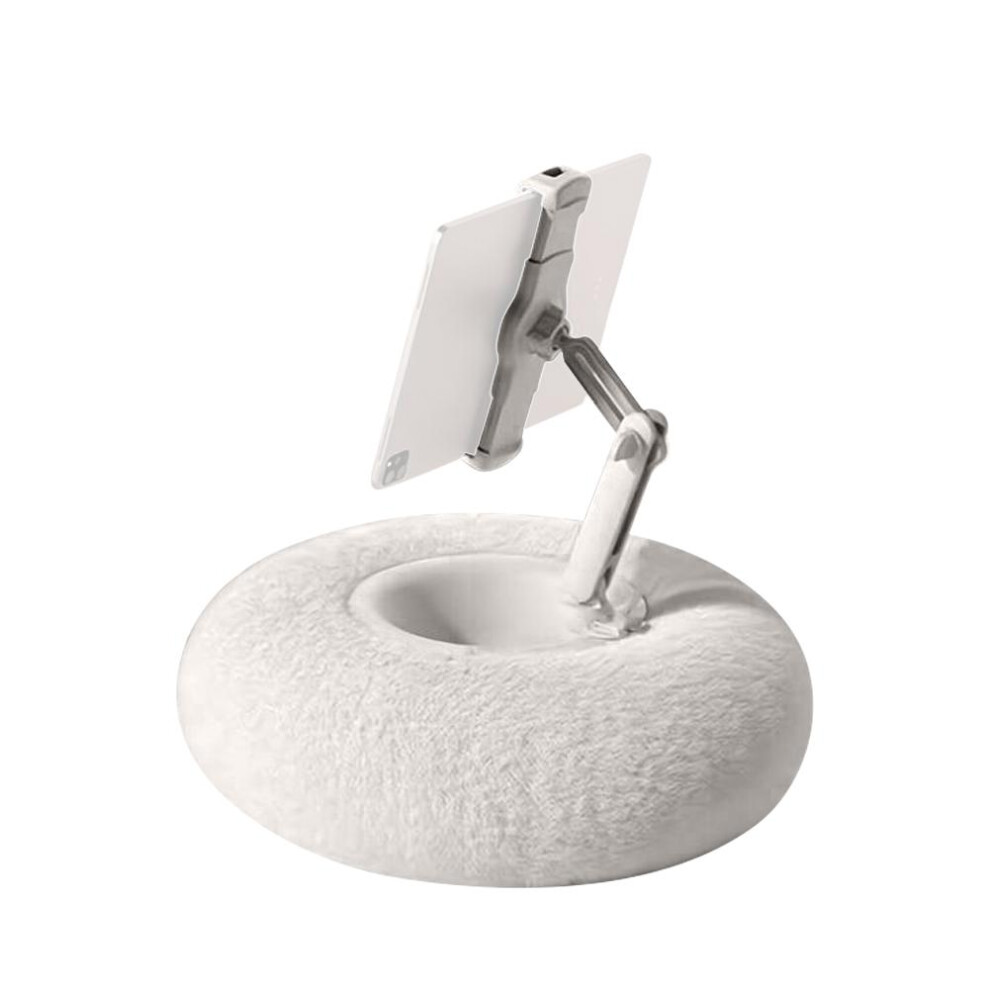 Adjustable for Kindle Pillow Stand Reading Support with Fuzzy Bowl 360 Phone Holder for Bed White