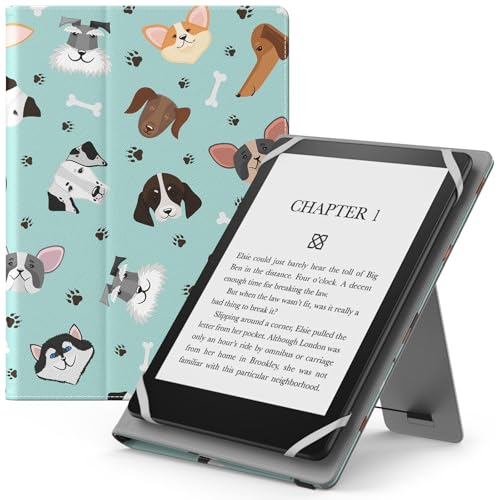 MoKo Universal Case for 6",6.8",7" eReaders Fire Tablet- Kindle/Kobo/Voyaga/Lenovo/Sony E-Book, Lightweight PU Leather Folio Shell Cover Case, with Hand Strap/Kickstand, Multiple Dog