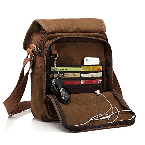 CHEREEKI Canvas Bag, Shoulder Bag Messenger Bag with Multiple Pockets (Hold 10 inch Tablet, Kindle)