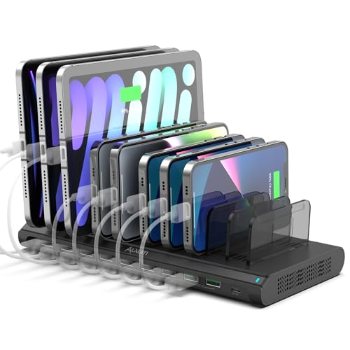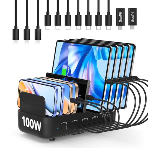 SooPii USB Charging Station with 10 Cables,100W Fast Charging Station for Multiple Devices,10-Port USB C Phone Charger Station Organizer for lPad,Tablet,Kindle and More(Black)