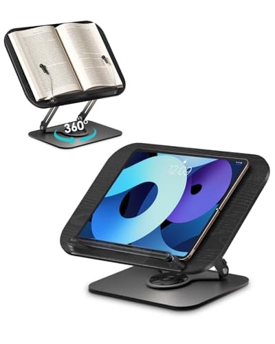 Viozon Book Stand for Reading,Book Holder, Height&Angle Adjustable, 360° Rotating Base, Foldable & Portable, Lightweight for Office, Kitchen, School Textbook, Recipe, Magazine,Tablet, Kindle, Black