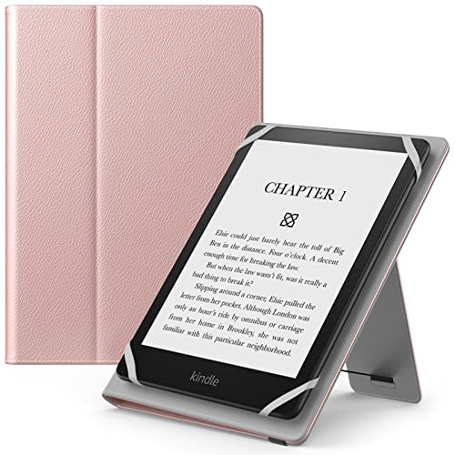 MoKo Universal Case for 6",6.8",7" Kindle eReaders Fire Tablet, Kindle/Kobo/Voyaga/Lenovo/Sony E-Book Tablet, Lightweight PU Leather Folio Shell Cover Case, with Hand Strap/Kickstand, Rose Gold