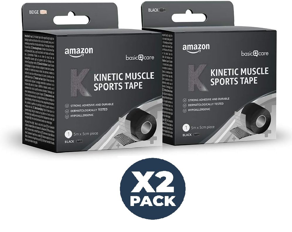 Amazon Basic Kinetic Kinesiology Muscle Sports Tape, 5m x 2 Pack , Black, Black