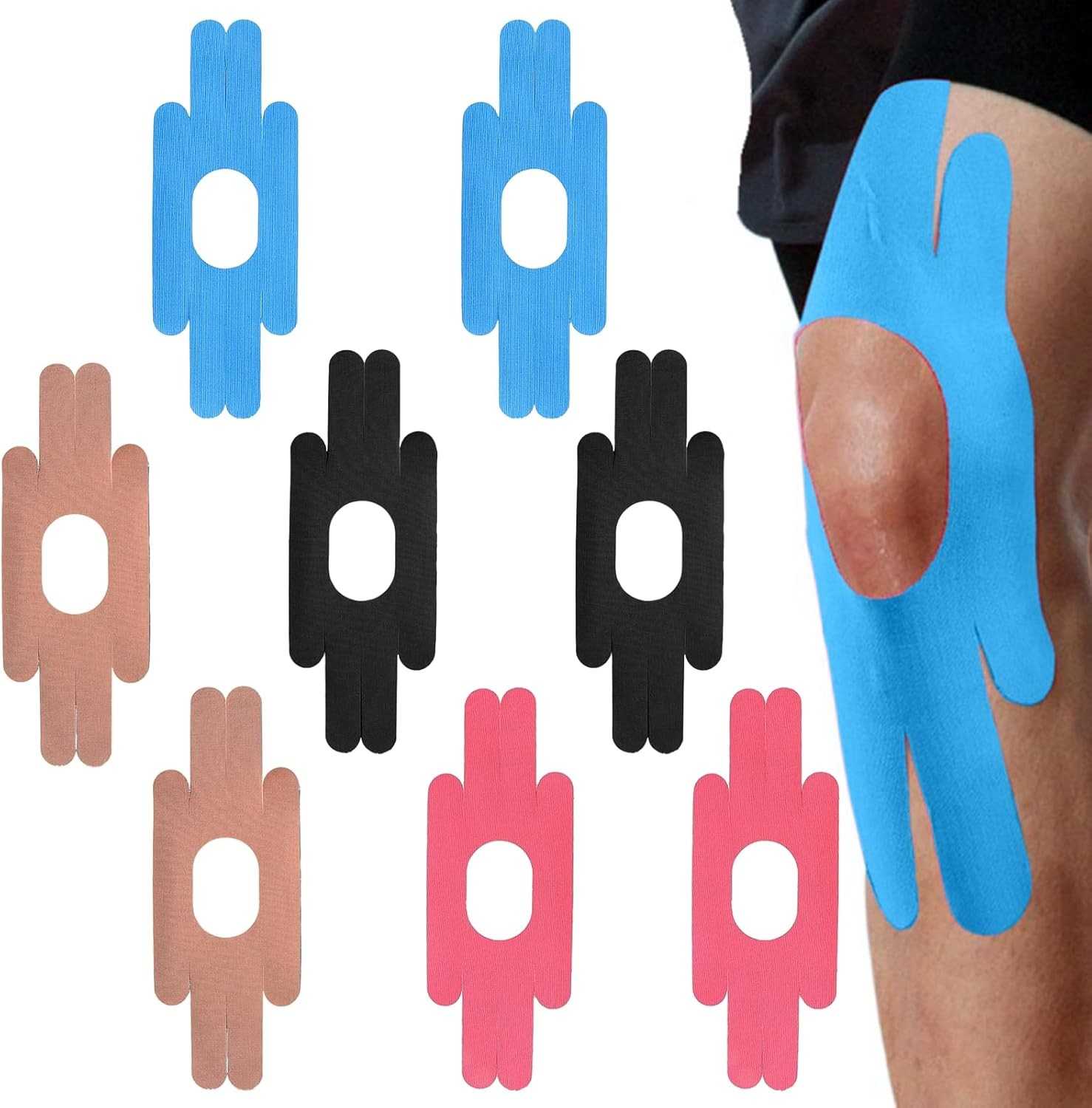 21pcs Precut Kinesiology Tape for Knees, Breathable Cotton Kinetic Knee Support
