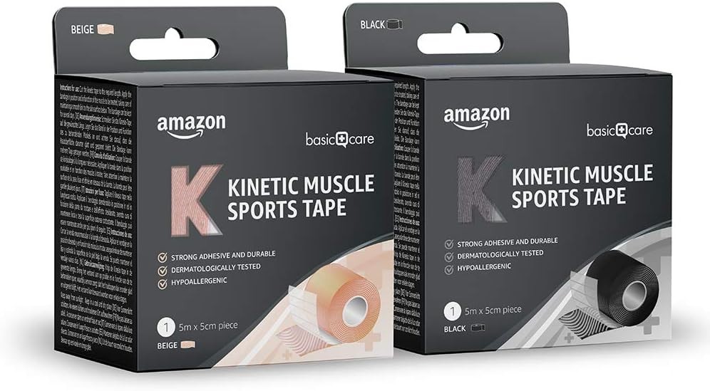 Amazon Basic Kinetic Kinesiology Muscle Sports Tape, 5m x 2 Pack , Black, Beige