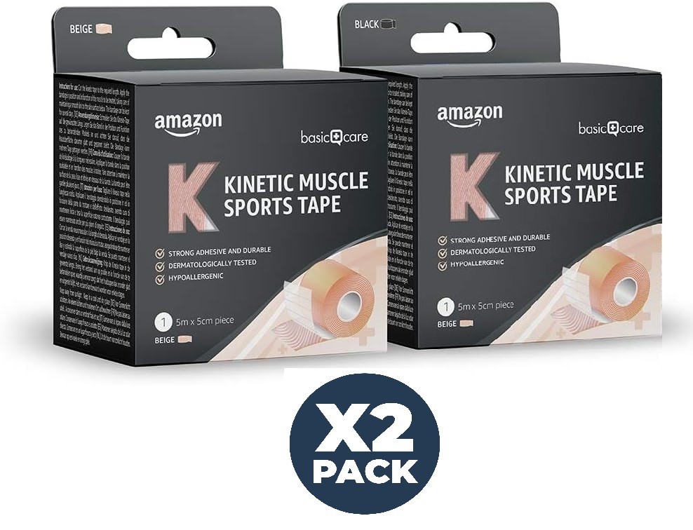 Amazon Basic Kinetic Kinesiology Muscle Sports Tape, 5m x 2 Pack ,Beige, Beige